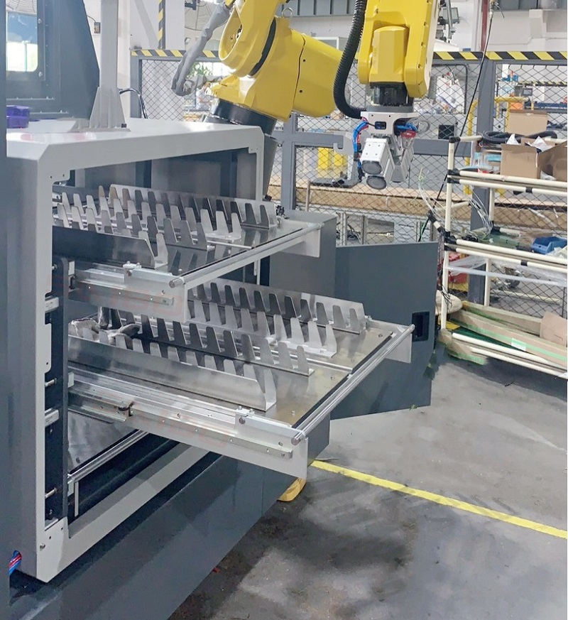 本案例是工業(yè)自動化生產(chǎn)中的中轉(zhuǎn)抽屜式存儲方案,3層抽屜均可雙向自動頻繁開合,用機械手取放產(chǎn)品。普通板材折彎式抽屜導(dǎo)軌鋼性低、不耐磨、下垂撓度大壽命短,不適合;最終經(jīng)SAIBO詳實的產(chǎn)品介紹、協(xié)助選型,客戶選用了SAIBO的工業(yè)抽屜導(dǎo)軌(三節(jié)全行程式,TDB)。