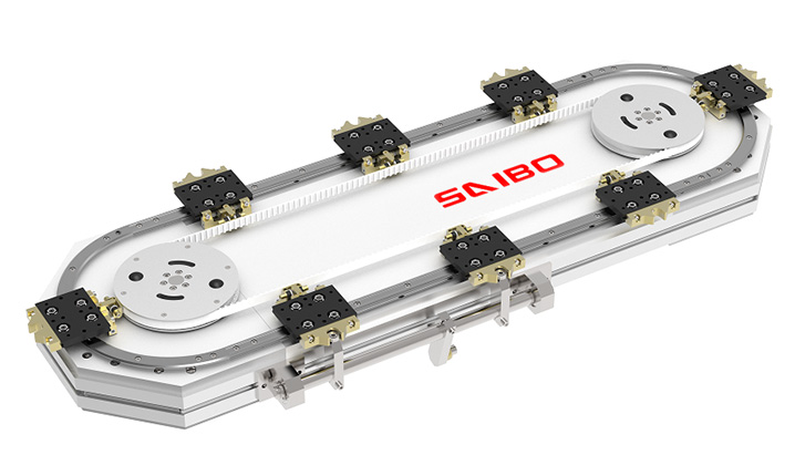 SAIBO環(huán)形導(dǎo)軌的高精度、高穩(wěn)定性、高移動速度等特點(diǎn)和不同的安裝方式可應(yīng)用于芯片的管帽和金屬上蓋的裝配線和包裝線上,提高了芯片制造的生產(chǎn)能力和成品合格率。