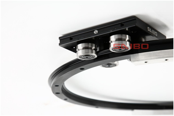 SAIBO圓弧導(dǎo)軌通過V型滾輪在圓弧V型導(dǎo)軌面上的滾動(dòng),實(shí)現(xiàn)圓周運(yùn)動(dòng)。